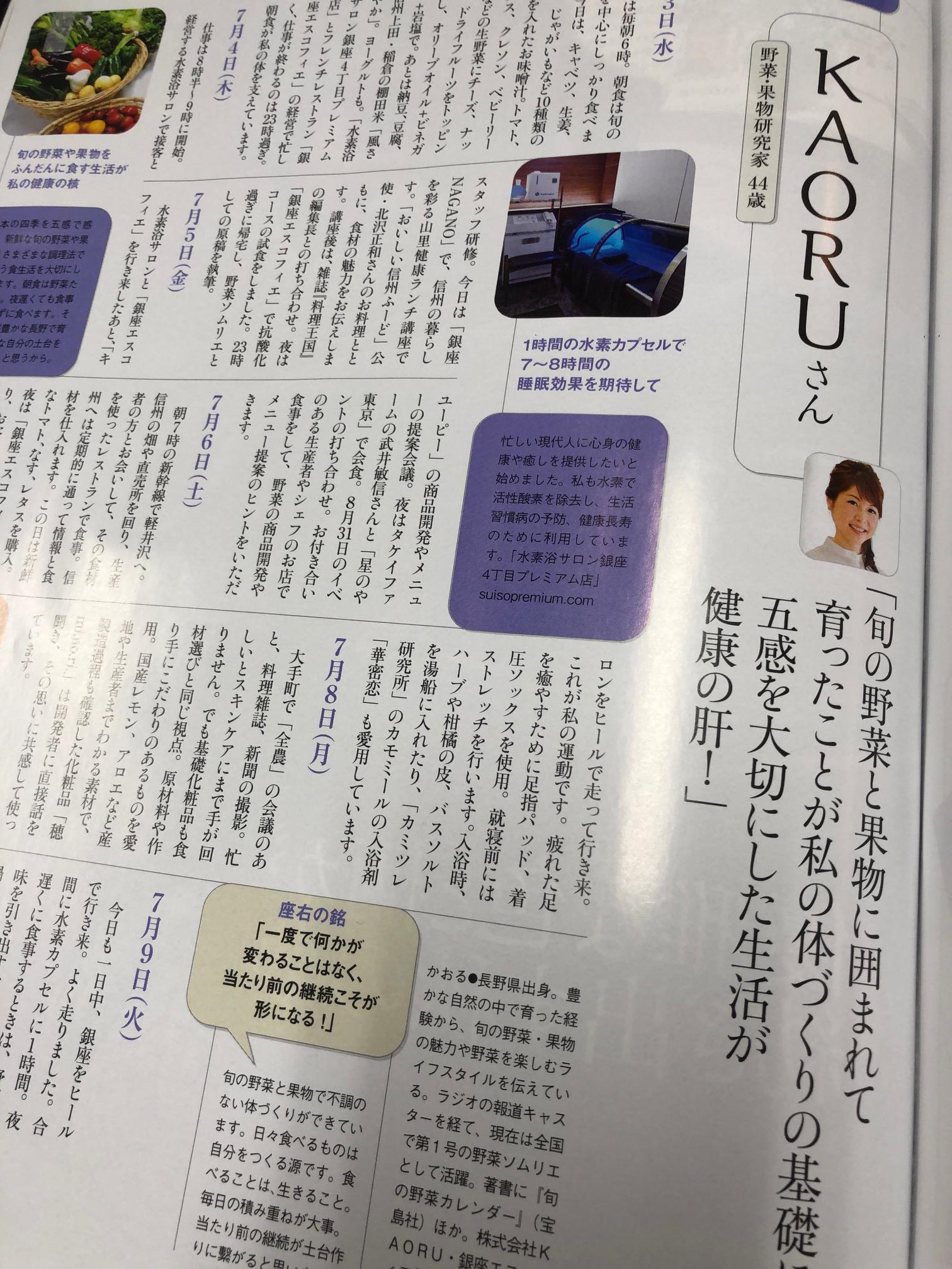 当店の社長、野菜ソムリエ KAORUの多忙な毎日を支える秘密が「婦人画報 10月号」に紹介されています。